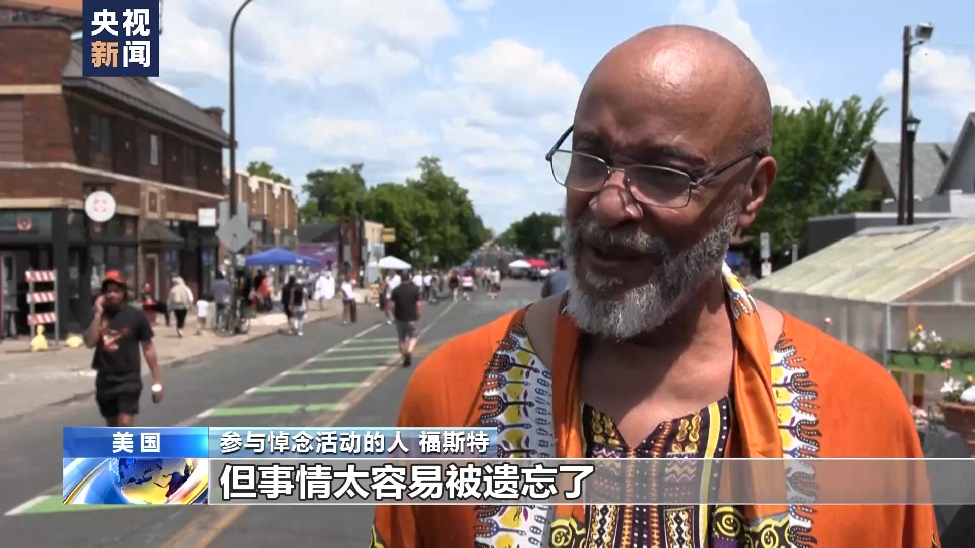 参与悼念活动的人 福斯特:当年事件发生时,全世界的目光都聚焦明尼阿波利斯,但事情太容易被遗忘了。作为个人来说,我们要永远铭记在心。