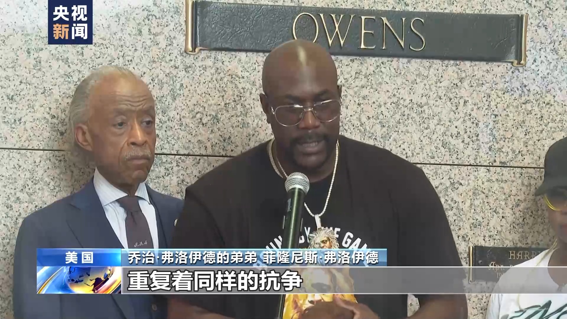 乔治·弗洛伊德的弟弟 菲隆尼斯·弗洛伊德:如今我们仍在这里,重复着同样的抗争,但我们永不放弃。因为每个人心中都藏着一点伟大,这份力量人人皆有,只是有时需要被唤醒。即使声音颤抖,也要挺身而出,发出呐喊。
