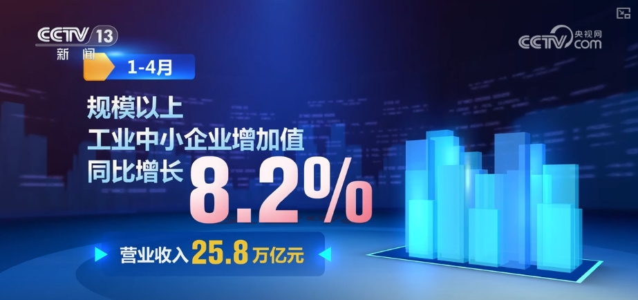 科技创新驱动着中小企业的生产与效益双提升。最新统计显示,1—4月,规模以上工业中小企业增加值同比增长8.2%,营业收入达25.8万亿元。