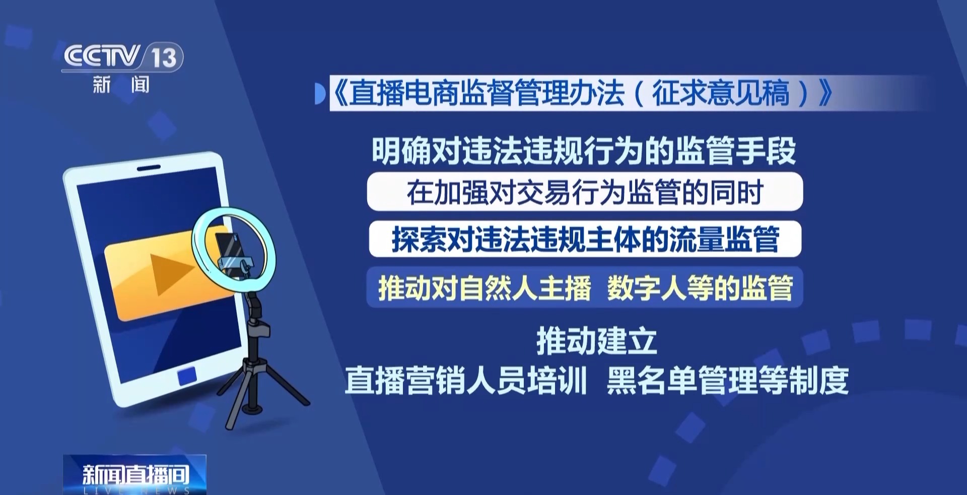 《办法(征求意见稿)》还明确了对违法违规行为的监管手段。在加强对交易行为监管的同时,探索对违法违规主体的流量监管,推动对自然人主播、数字人等的监管,推动建立直播营销人员培训、黑名单管理等制度。