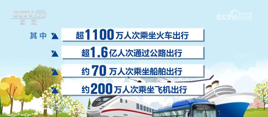 2024年,我国平均每天跨区域出行约1.8亿人次,比2023年增长5.4%,其中,有超1100万人次乘坐火车出行、超1.6亿人次通过公路出行、约70万人次乘坐船舶出行、约200万人次乘坐飞机出行。