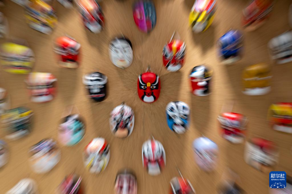 这是6月7日在淮剧小镇内拍摄的脸谱。新华社记者 张涛 摄