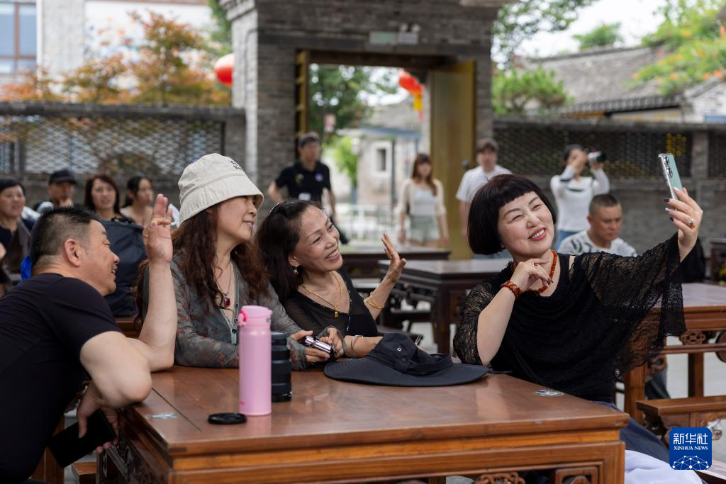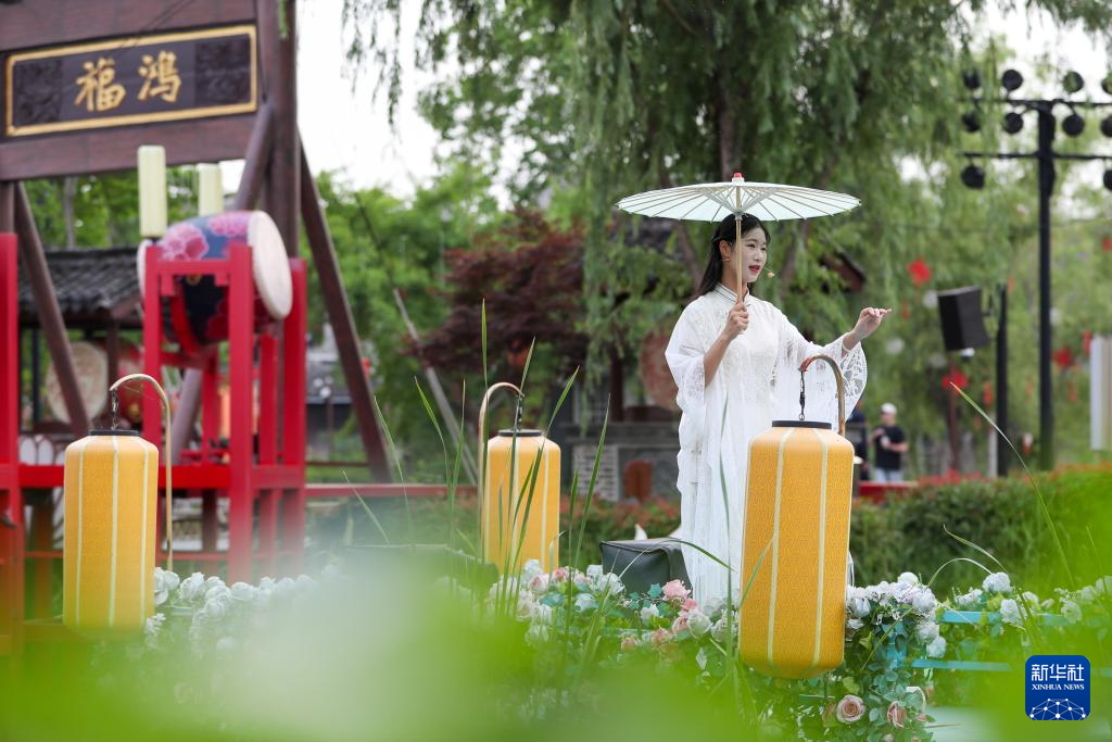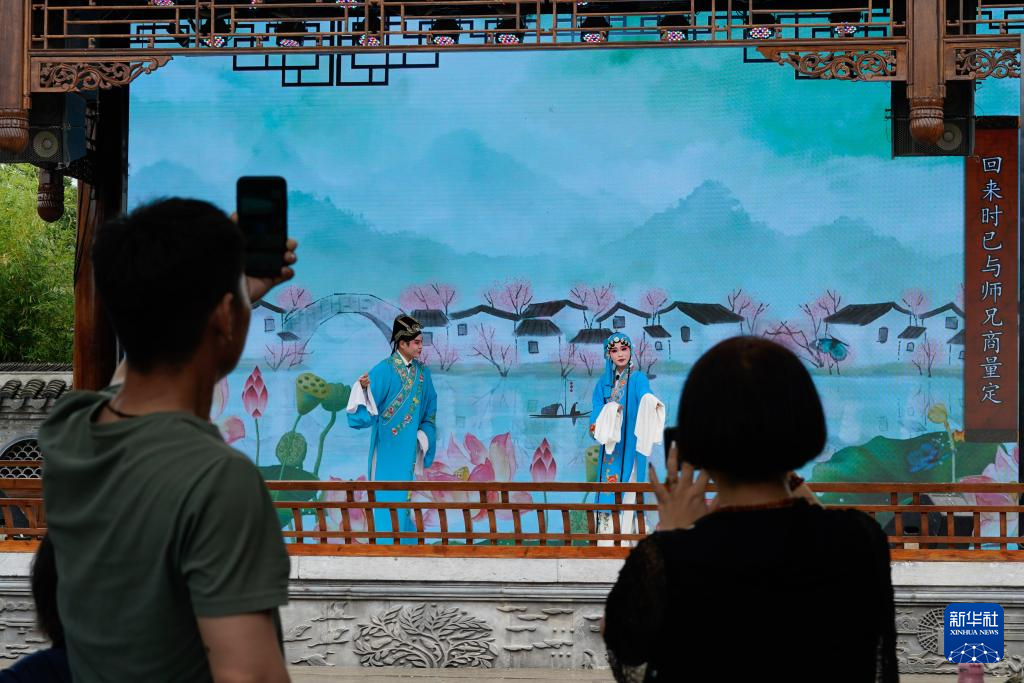 6月7日,观众在江苏省盐城市建湖县淮剧小镇拍照打卡。新华社记者 王翔 摄