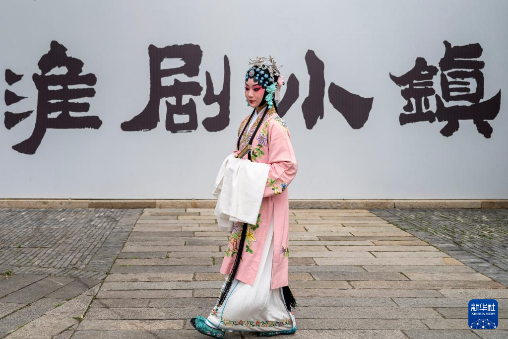 6月7日,演员夏诗雅行走在淮剧小镇内。新华社记者 张涛 摄