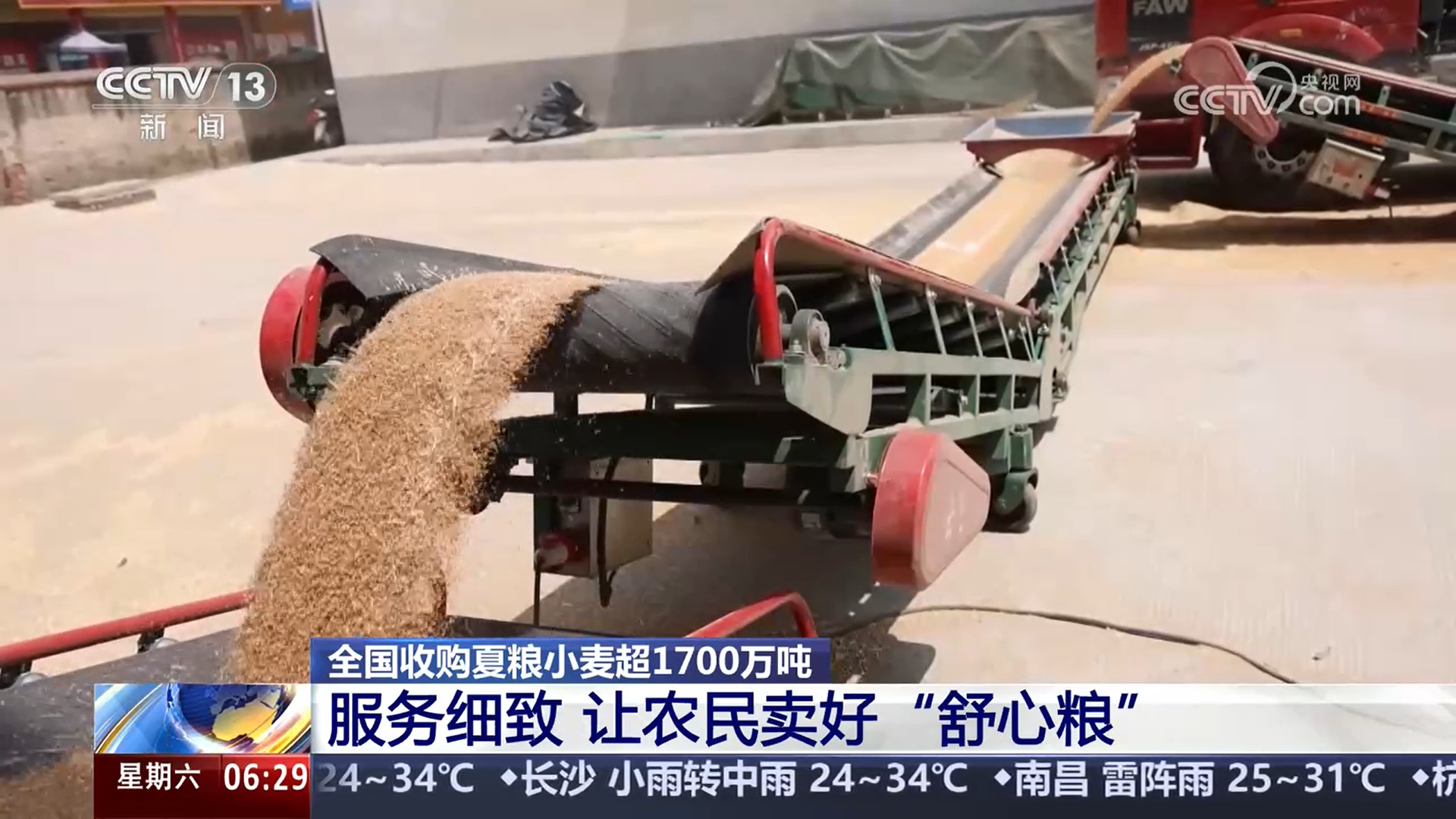 央视网消息:国家粮食和物资储备局6月13日发布的数据显示:截至目前,全国收购夏粮小麦超1700万吨,进度快于上年同期。