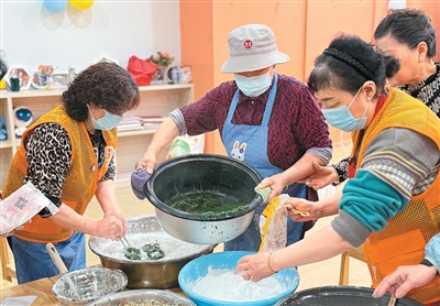 “共享奶奶”正在制作青团,准备分发给社区老人。秀清社区供图