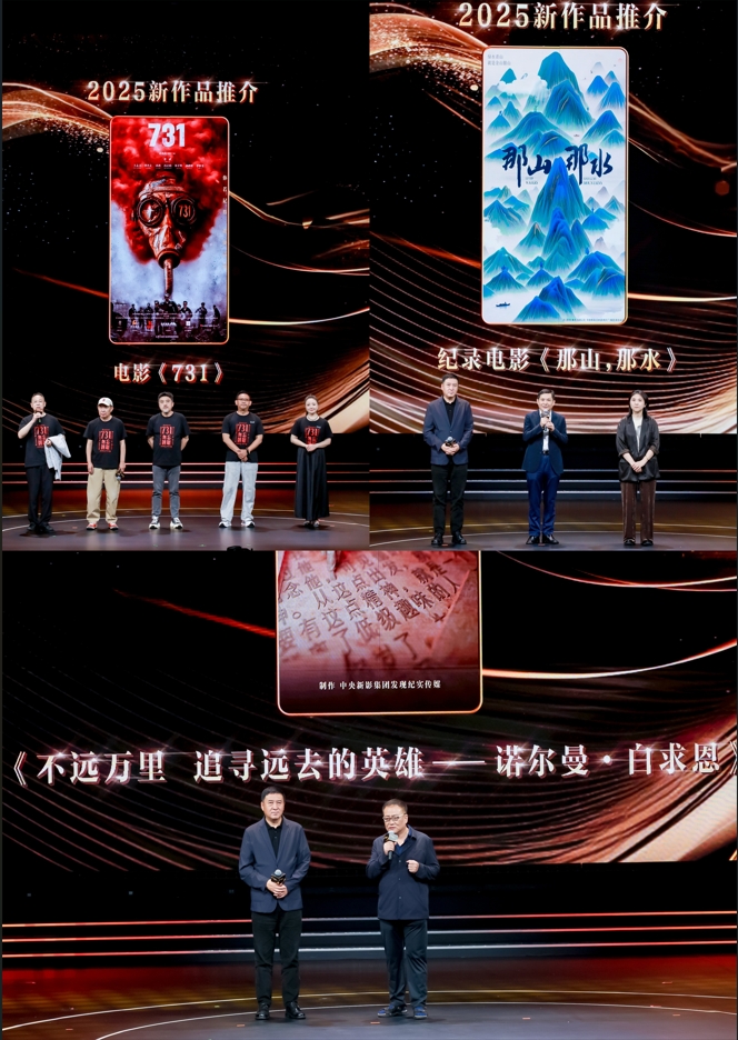 今年是中国人民抗日战争暨世界反法西斯战争胜利80周年,电影《731》主创团队在活动现场讲述了如何借助影像的力量,将民族记忆的创口化为照亮未来的火炬,让历史真相不被遗忘,让和平信念代代相传;纪录片《那山那水》以生态文明建设为内核,记录浙江不同地区人们的真实生活,持续推动绿水青山向金山银山转化、实现二者双向奔赴的伟大实践。《不远万里 追寻远去的英雄——诺尔曼·白求恩》通过寻访白求恩在中国留下的足迹,讲述白求恩故事,致敬白求恩精神。