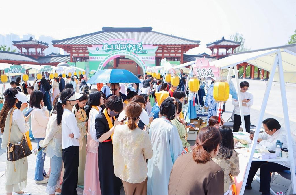 2025年4月10日,群众在南阳市医圣文化园体验中医义诊。新华社记者 吴刚 摄