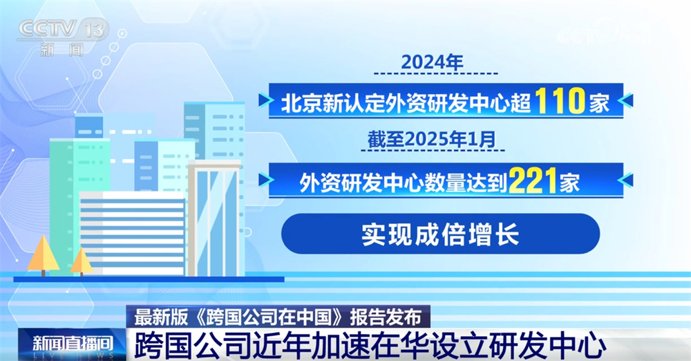《跨国公司在中国》报告指出,跨国公司加速设立研发中心,为新质生产力发展创造动力。据统计,2025年5月,上海外资研发中心累计达到603家;2024年,北京新认定外资研发中心超110家,截至2025年1月,外资研发中心数量达到221家,实现成倍增长。