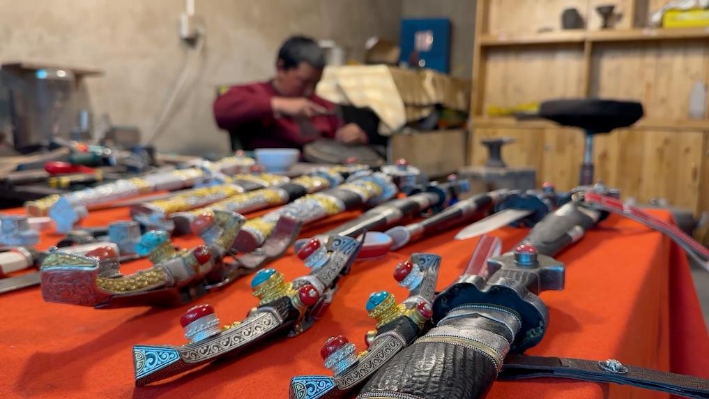 青海玉树安冲藏刀拥有500多年历史,工艺独特、选料精良,在藏区享有盛誉。其最大特色在于刀柄采用银、紫铜、黄铜等金属交叉镶嵌,别具一格,区别于他处的浮雕工艺。