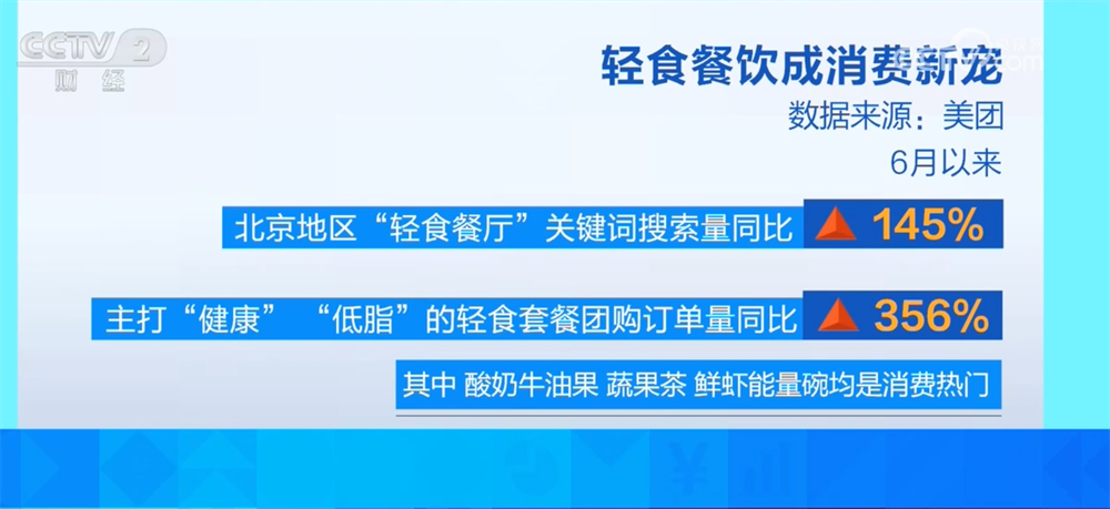 看好未来的增长潜力,这家轻食连锁店计划今年在全国范围内新开设10家门店。6月以来,北京地区“轻食餐厅”关键词搜索量同比增长145%,主打“健康”“低脂”的轻食套餐团购订单量同比增长356%,其中,酸奶牛油果、蔬果茶、鲜虾能量碗均是消费热门。