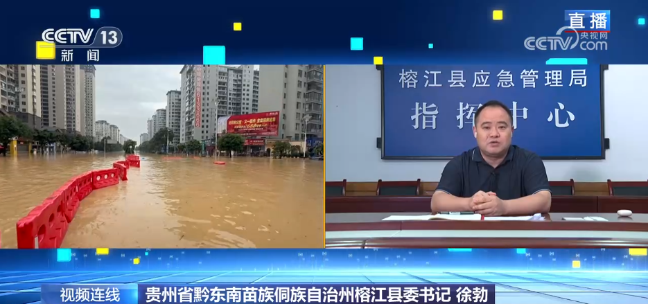 贵州省黔东南苗族侗族自治州榕江县委书记 徐勃:经过长时间的降雨,三条江的洪水汇流到榕江县城,目前判断是超五十年一遇的大洪灾。目前榕江县受灾的人群超过十万人。昨天在洪水最高峰的时候,从低洼危险处动员了52000多名群众转移到安全区域。后来担心洪水进一步扩大,我们又从比较安全的地方再次动员转移了五万多名群众,到更安全的地方去,这一次总共转移群众达到了十万多人。