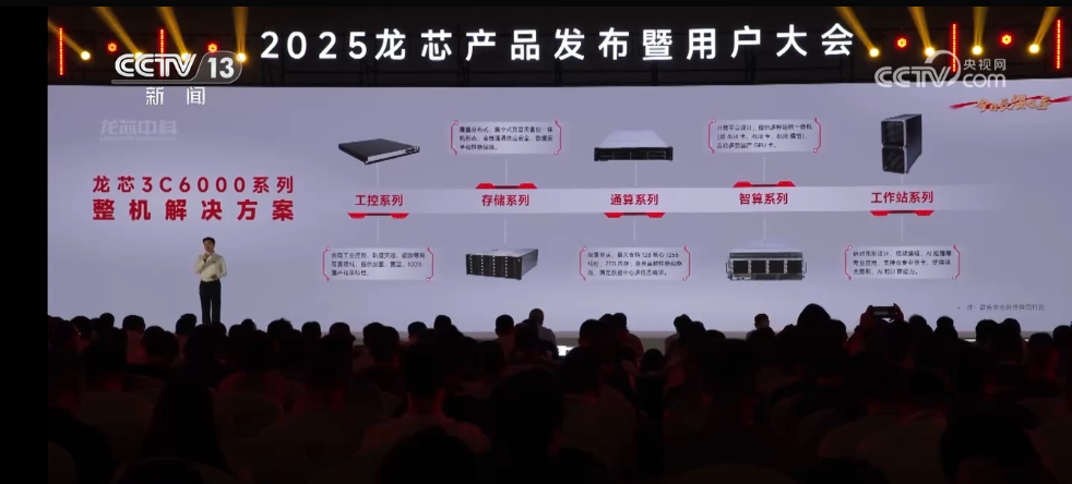 最新发布的龙芯3C6000采用我国自主设计的指令系统龙架构,无需依赖任何国外授权技术,是我国自主研发、自主可控的新一代通用处理器,可满足通算、智算、存储、工控、工作站等多场景的计算需求。目前,3C6000系列处理器已获《安全可靠测评公告》当前最高等级二级认证,可确保关键领域应用安全。专家表示,3C6000的性能相当于23年或者24年市场主流产品的水平,是一个土生土长的CPU,它没有任何境外技术授权,也不依赖任何境外供应链,完全是依赖境内供应链,从指令系统到各种IP核都是我国研发出来的CPU。