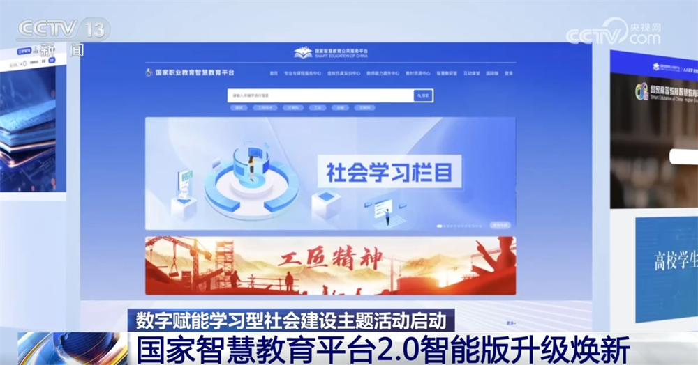 国家智慧教育平台2.0智能版全方位升级焕新,精选基础教育、职业教育、高等教育优质资源,发布院士讲堂、大国工匠等专题,上新课程3000门。新增岗位胜任力专区,促进职场能力提升和职业生涯发展。新设人工智能专区,推进人工智能全学段教育和全社会通识教育。新建社会学习专栏,形成满足全民终身学习需求的资源体系。