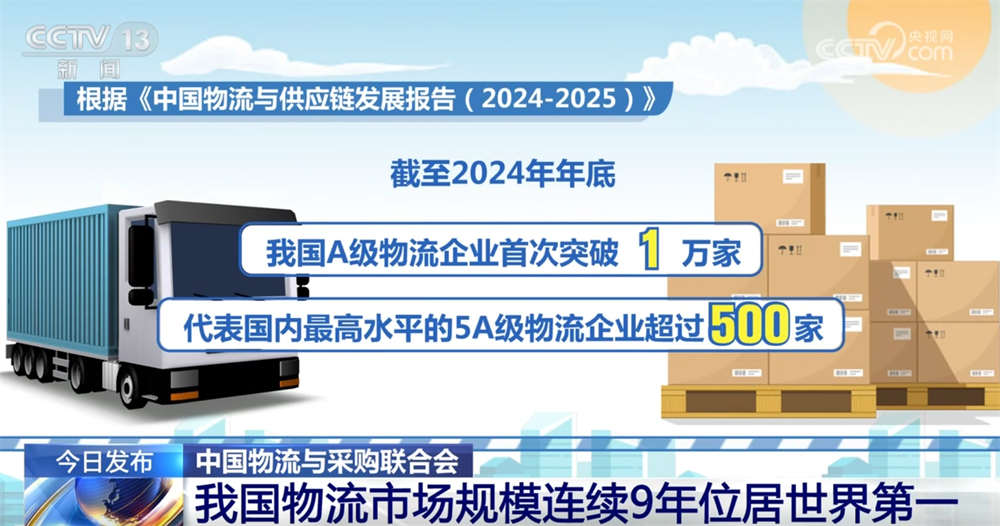 央视网消息:中国物流与采购联合会6月27日发布《中国物流与供应链发展报告(2024—2025)》。根据报告,我国物流市场规模连续9年位居世界第一,现代物流对国民经济的支撑作用进一步增强。