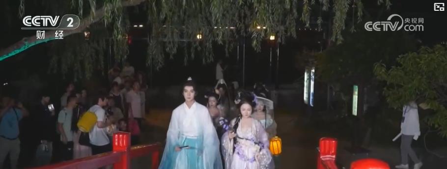 近段时间,江苏扬州瘦西湖开展了国风文化艺术季活动,在活动现场,古风快闪、汉服巡游等精彩上演,为夜游的游客带来别样的旅游体验。