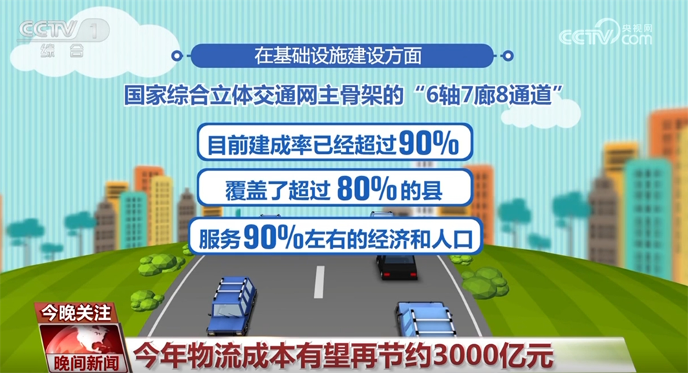 在基础设施建设方面,国家综合立体交通网主骨架的“6轴7廊8通道”目前建成率已经超过90%,覆盖了超过80%的县,服务90%左右的经济和人口。“物畅其流”带动全社会降本增效,2024年,全社会物流成本节约超过4000亿元,今年有望再节约3000亿元左右。