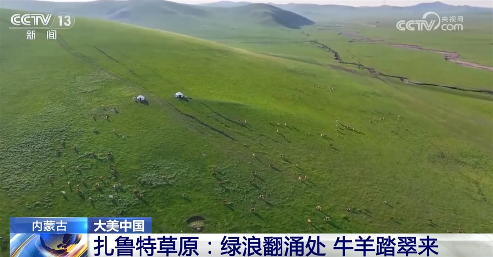 内蒙古扎鲁特草原:绿浪翻涌处 牛羊踏翠来