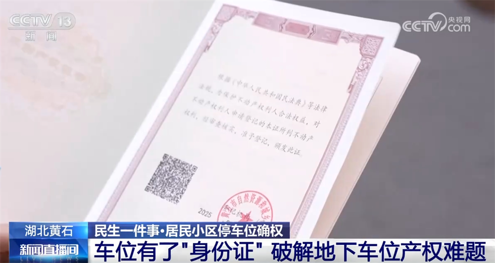 在黄石的一个老旧居民小区,市民张娜向记者展示她刚到手不久的地下车位不动产权证书。由于小区建成较早,物业几经更换,张娜花费5万多块钱买的停车位面临车位产权模糊不清的问题。如今,这本清晰地载明了车位的位置、面积等产权信息的红本本让她彻底吃下了“定心丸”。