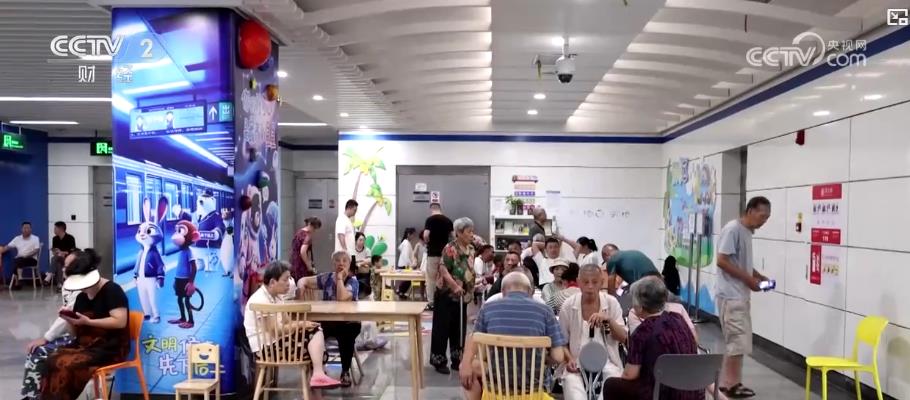 在南昌地铁3号线墩子塘站站厅,明亮开阔的空间里专门划分出了纳凉区,并且配备了桌椅板凳、各类读物,还特意开辟了儿童娱乐区,让许多市民带着孩子前来避暑纳凉。