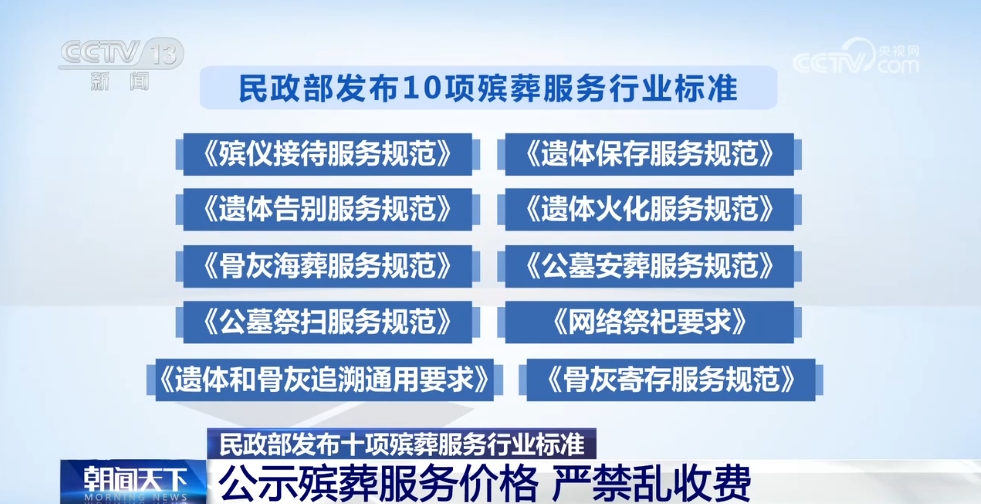 正在阅读:民政部发布十项殡葬服务行业标准 严禁乱收费