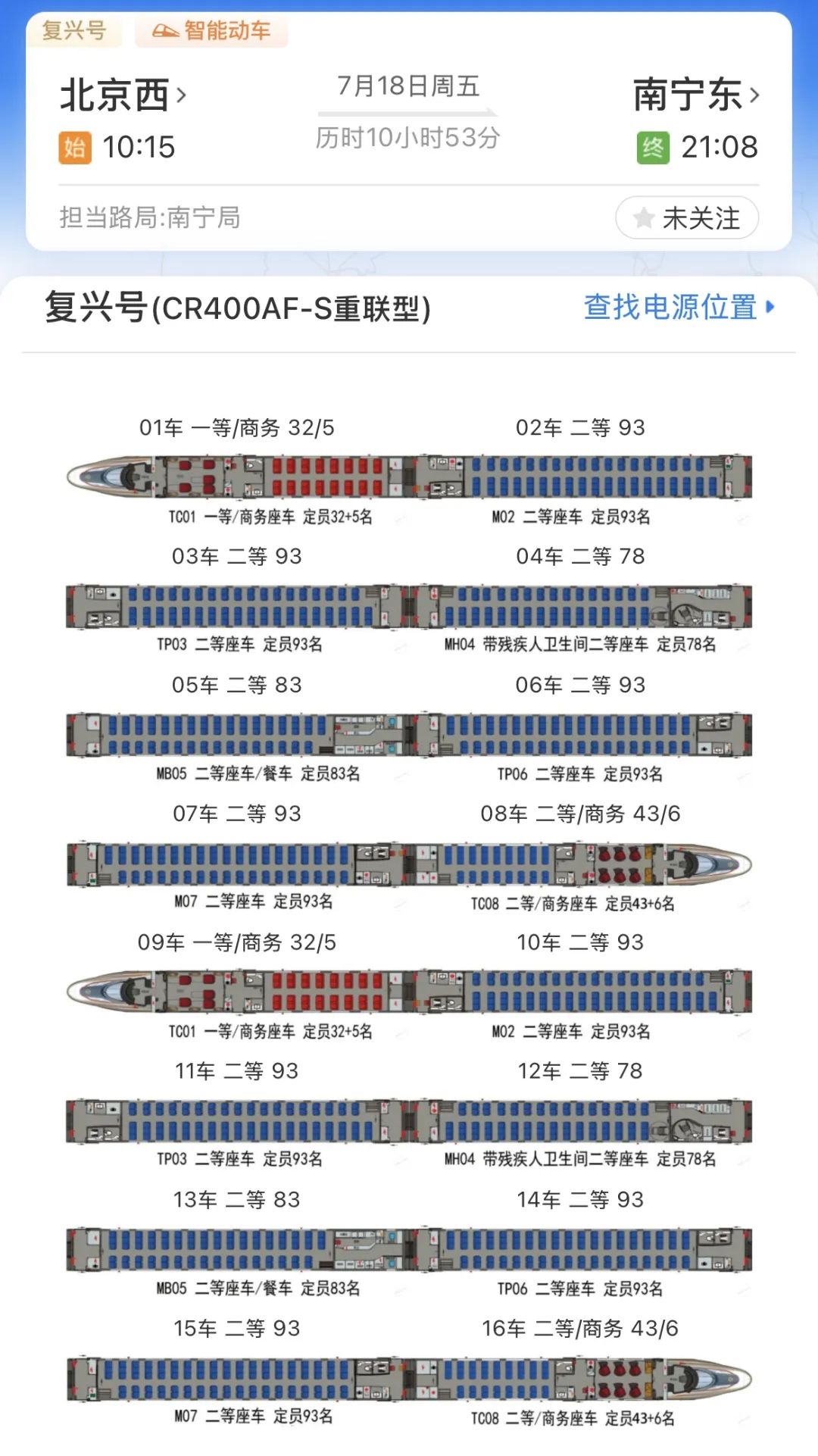 可以看到所在车厢的车厢号