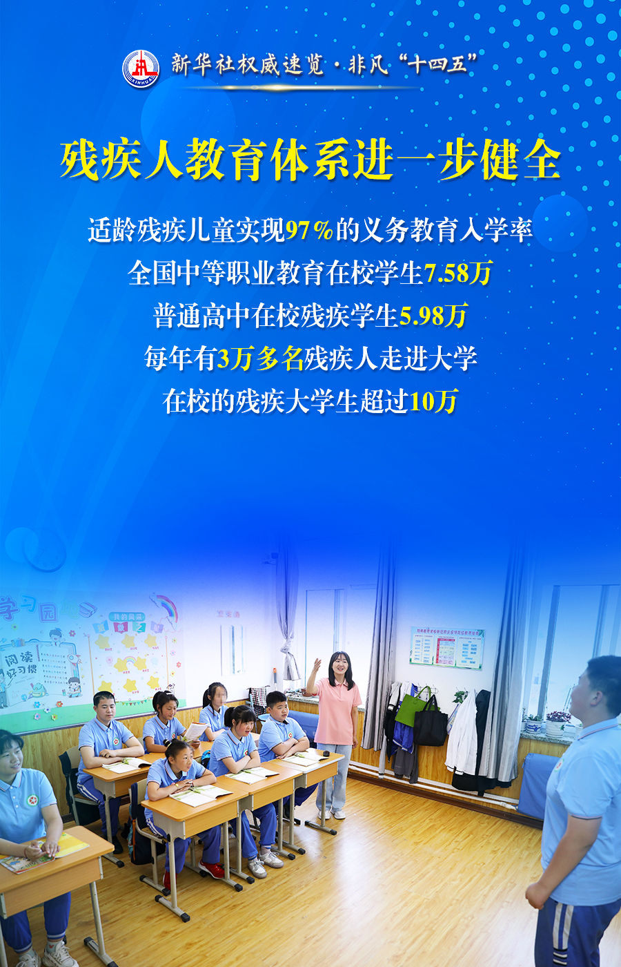 99.1万易返贫致贫残疾人家庭纳入监测和帮扶范围、全国残疾人托养服务机构超过1万家以上、每年有3万多名残疾人上大学……22日举行的“高质量完成‘十四五’规划”发布会上,中国残联主席程凯说,残疾人事业发展朝着高质量发展要求和现代化发展目标的方向迈出坚实步伐。通过这组海报,一起了解。
