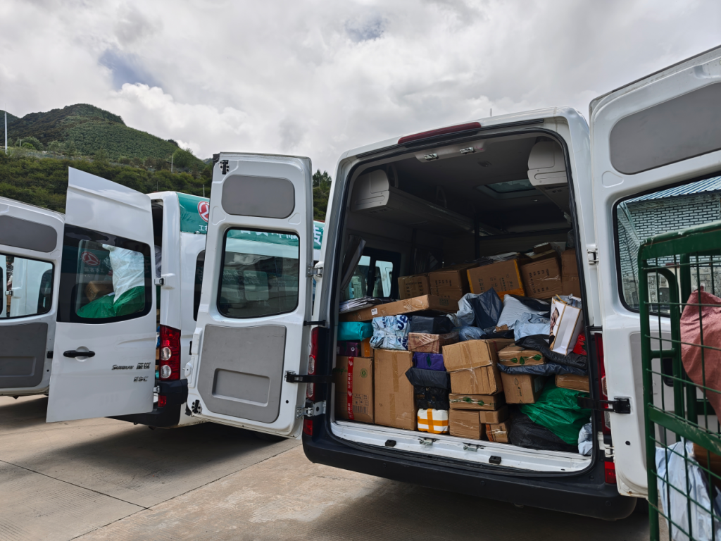 装满快递的农村客车