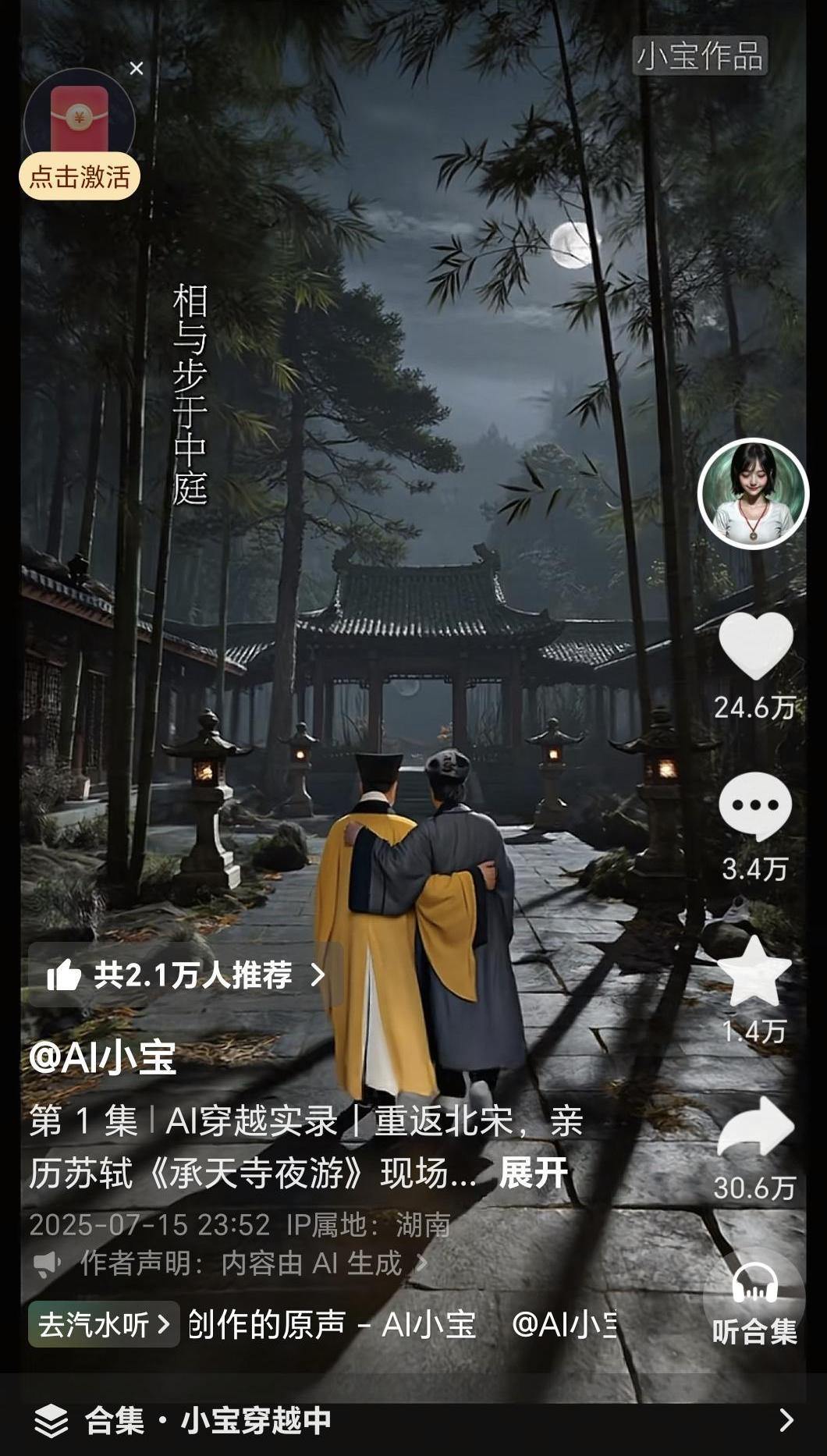AI制作的《记承天寺夜游》现场。截图自AI小宝作品