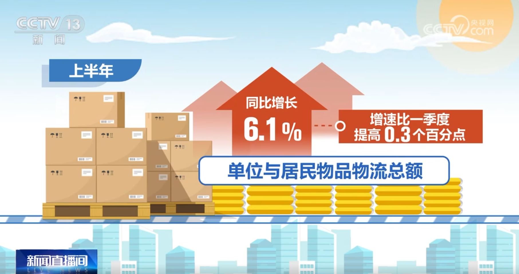 央视网消息:中国物流与采购联合会7月29日公布今年上半年物流运行数据。上半年,社会物流总额保持稳定增长,需求结构持续优化,我国物流行业呈现稳中有进、质效双升的发展态势。
