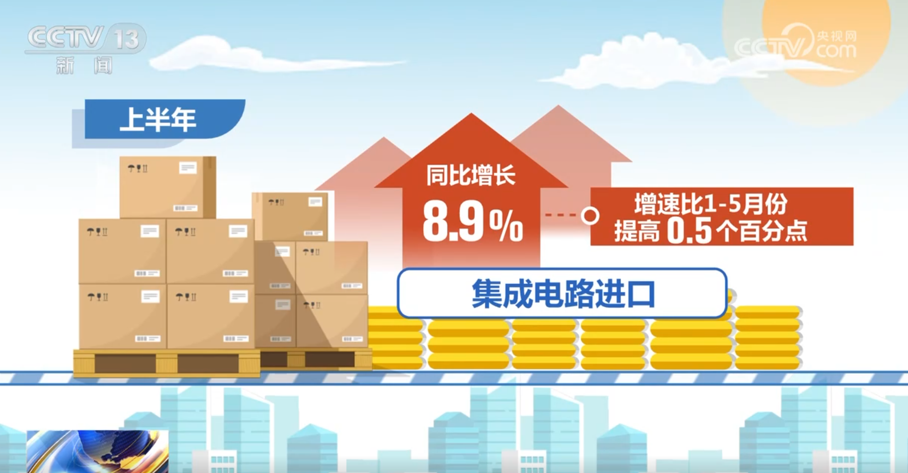 随着高水平对外开放、外贸多元化持续推进,叠加扩内需政策持续发力,二季度进口物流降幅有所收窄。大宗商品原油和铁矿砂及其精矿进口物流实物量有所恢复。集成电路进口同比增长8.9%,增速比1—5月份提高0.5个百分点。