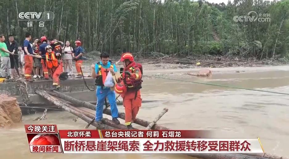 北京怀柔:断桥悬崖架绳索 全力救援转移受困群众