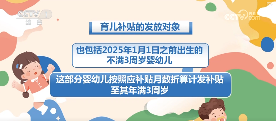 育儿补贴的发放对象也包括2025年1月1日之前出生的不满3周岁婴幼儿,这部分婴幼儿按照应补贴月数折算计发补贴,至其年满3周岁。