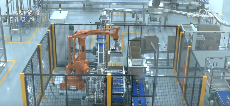 参观完杂粮文化馆,拐过一个走廊,就到了杂粮食品的智能生产车间。在参观通道,学生们可以俯瞰整个生产车间,观察智能机械臂如何将生产好的杂粮产品装箱、运输。