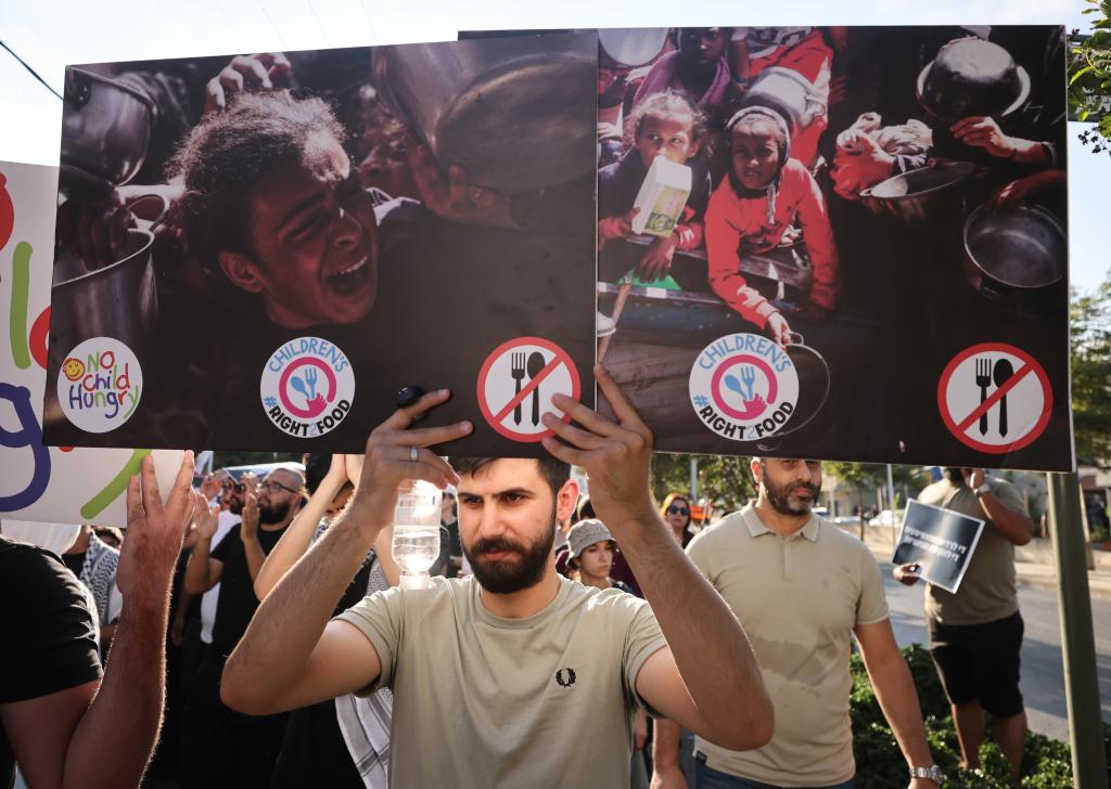 7月25日,在以色列北部萨赫宁,人们抗议以军对加沙援助物资的流入限制。新华社发(贾马尔·阿瓦德摄)