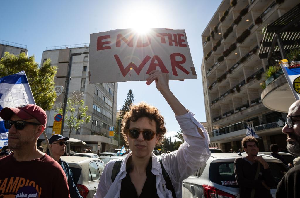 3月19日,人们在位于耶路撒冷的以色列总理府附近参加集会。新华社记者陈君清摄