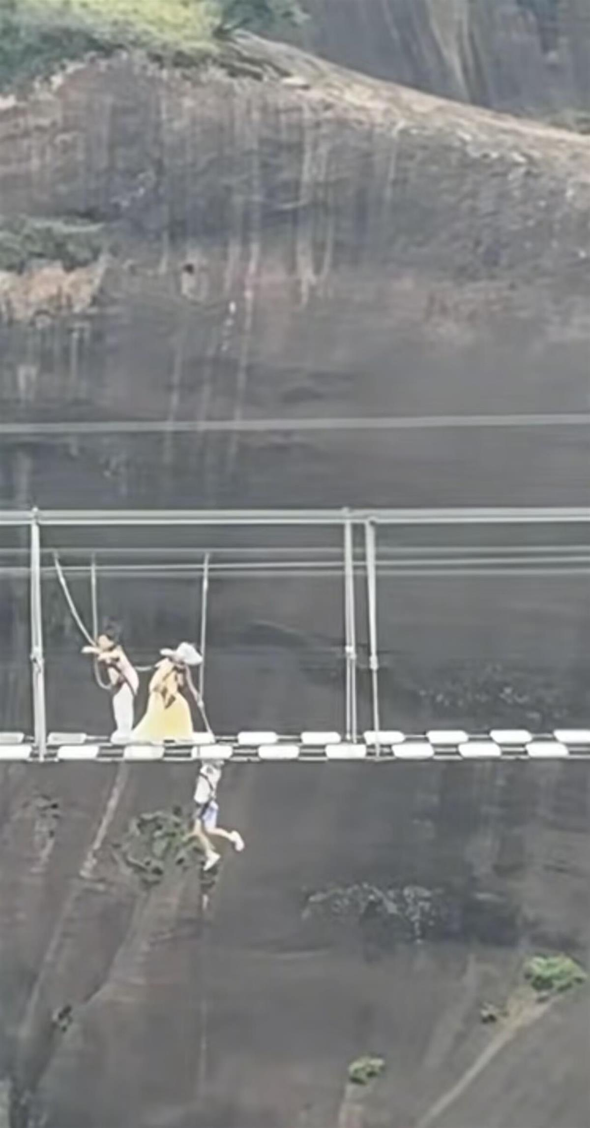 ·男孩从玻璃栈道掉落悬挂半空,郴州市高椅岭旅游区:孩子踩空掉落,已被安全救起。