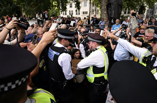 当地时间9日,英国伦敦爆发一场大规模示威活动,警方逮捕逾466人。图源:英媒