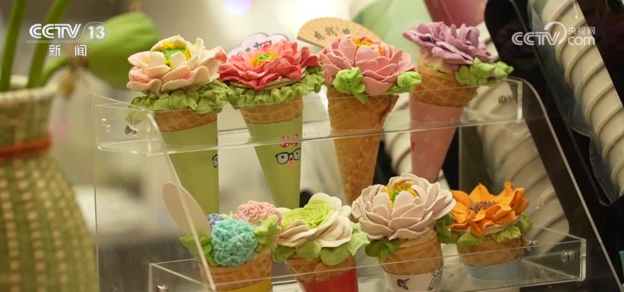 观演活动也拉动了冷饮店的消费,其中“荷花造型雪糕”最受欢迎,绿豆沙制成的“荷叶”托起奶油质感的“荷花”,一口下去,豆香与奶香交融。以荷花、莲藕为灵感的精致零食销量也不错。记者发现,不少消费者购买了冰饮,并搭配荷花小食,临窗而坐,边品尝美食,边欣赏窗外的实景演出。