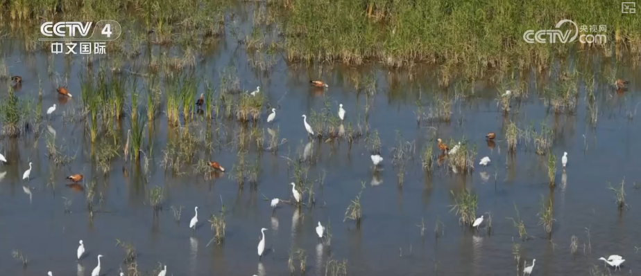 过去,湿地的保护主要依靠自然降水,如今,这里每年都会制定科学的引水和补水计划,让湿地保持现在的生机。常年监测显示,这里的鸟类从1992年的187种,逐步发展到了现在的374种。每年都会有数以百万计的鸟类到这里越冬迁徙,它们把这儿当成了它们的“国际机场”。