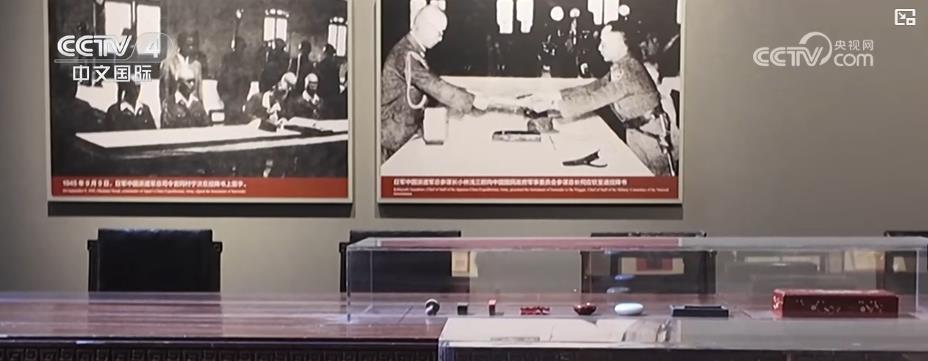 在中国人民抗日战争纪念馆地下一层第七部分展厅,陈列了众多与1945年8月15日,日本宣布无条件投降相关的展品。馆内还首次展出了国家一级文物——“密苏里”号战列舰3号锅炉铭牌。1945年9月2日,日本无条件投降签字仪式在“密苏里”号主甲板举行。参观者们通过文物下方的多媒体大屏观看当时的历史视频。此外,展厅还原了1945年9月9日上午9时,中国战区日军投降签字仪式举行时的历史场景。