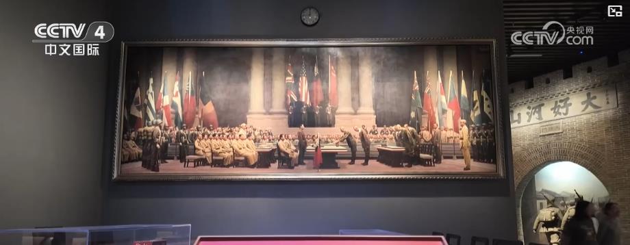 中国人民抗日战争纪念馆展览陈列部副主任 韩小昆:左侧画面有个角落,有一把空白的椅子是没有画(人物的),(作品)形象里面将近有200多个人,但是就唯独空了一把椅子,(这是)基于历史进行的艺术创作,就是说,是在战争中牺牲的英烈们也参加了这个受降仪式。