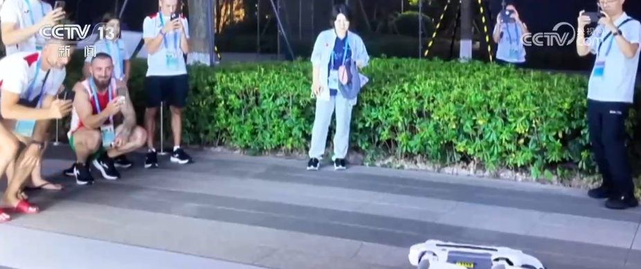 一个前空翻,一个侧身跳,再来萌萌地握个手……世运村里的机器狗成了“大明星”,引得运动员们纷纷驻足。玩足球、打篮球、挥壁球……“智能运动搭子”现场陪练,吸引各国运动员排队和它“较量”。还有清洁机器人在泳池场馆忙碌,承担日常维护及清洁任务。世运会上,80余款“成都造”的前沿科技项目集中“上岗”,点亮赛场内外的各个场景。