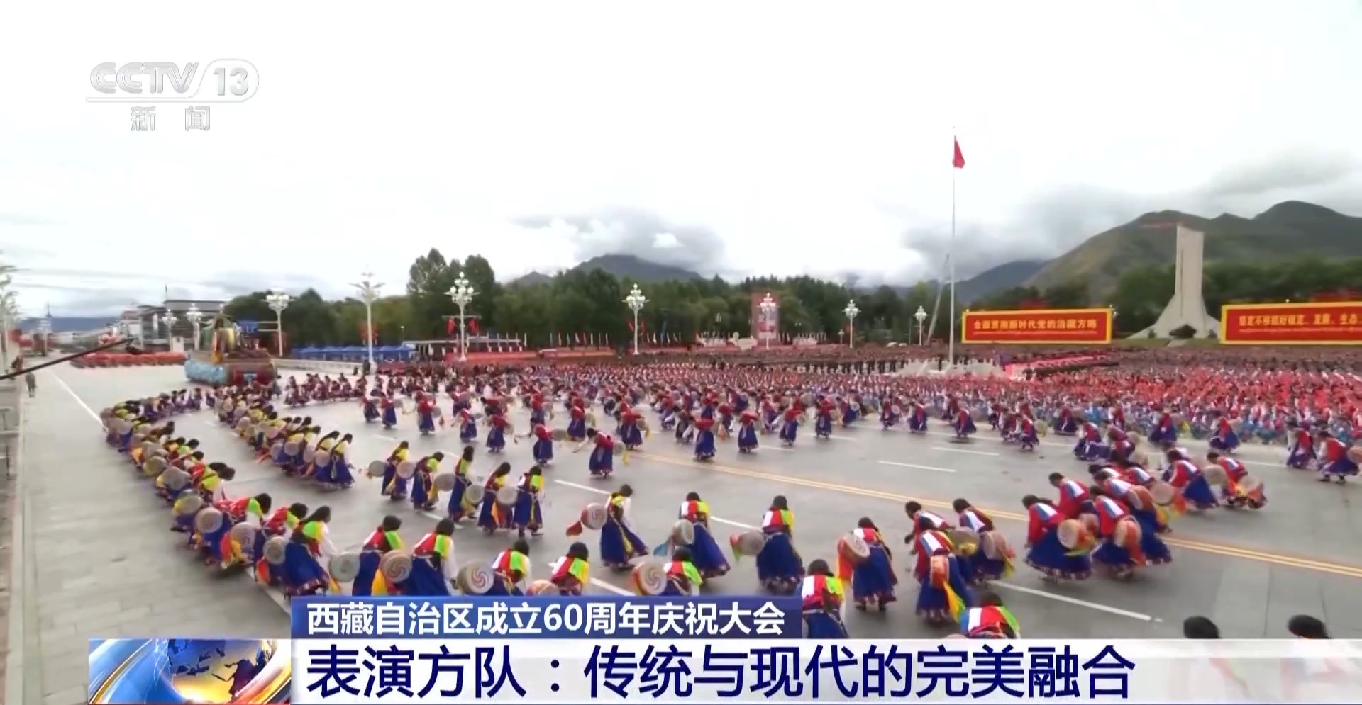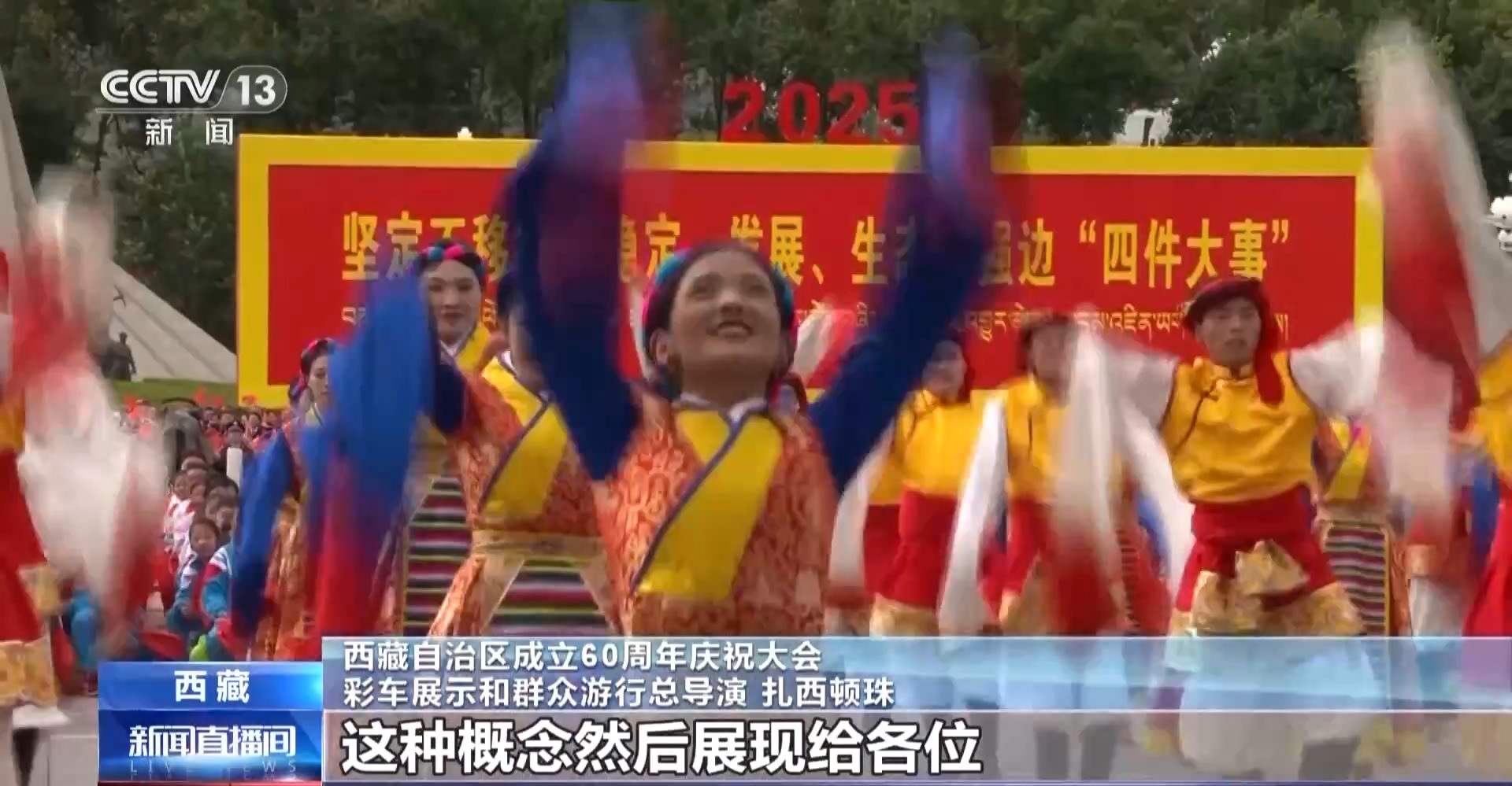 西藏自治区成立60周年庆祝大会彩车展示和群众游行总导演 扎西顿珠:原先没有过这种展现方式,我们原先在统一音乐上跳舞,这次我们用传统和现代发展的概念展现给各位。