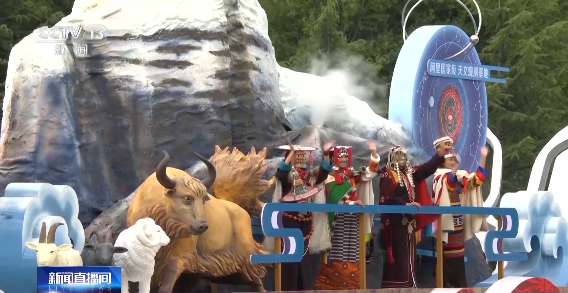 “天上阿里”彩车的纹样,取自阿里地区的岩画、出土的汉代丝绸和著名的古格壁画;车上还有“国家级天文观测基地”和“低空经济”两项亮眼成就,但工作人员仍然略有遗憾。