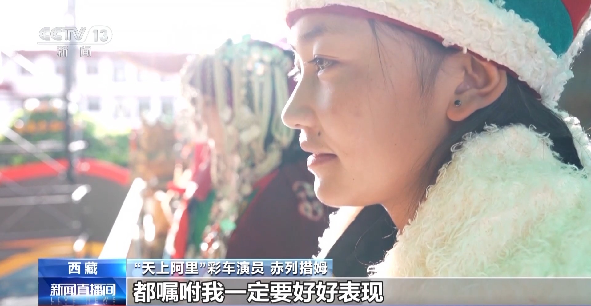 “天上阿里”彩车演员 赤列措姆:爸爸妈妈还有家里很多亲戚都嘱咐我一定要好好表现,我会把祖国的强大记在心里,回去给家人们讲。