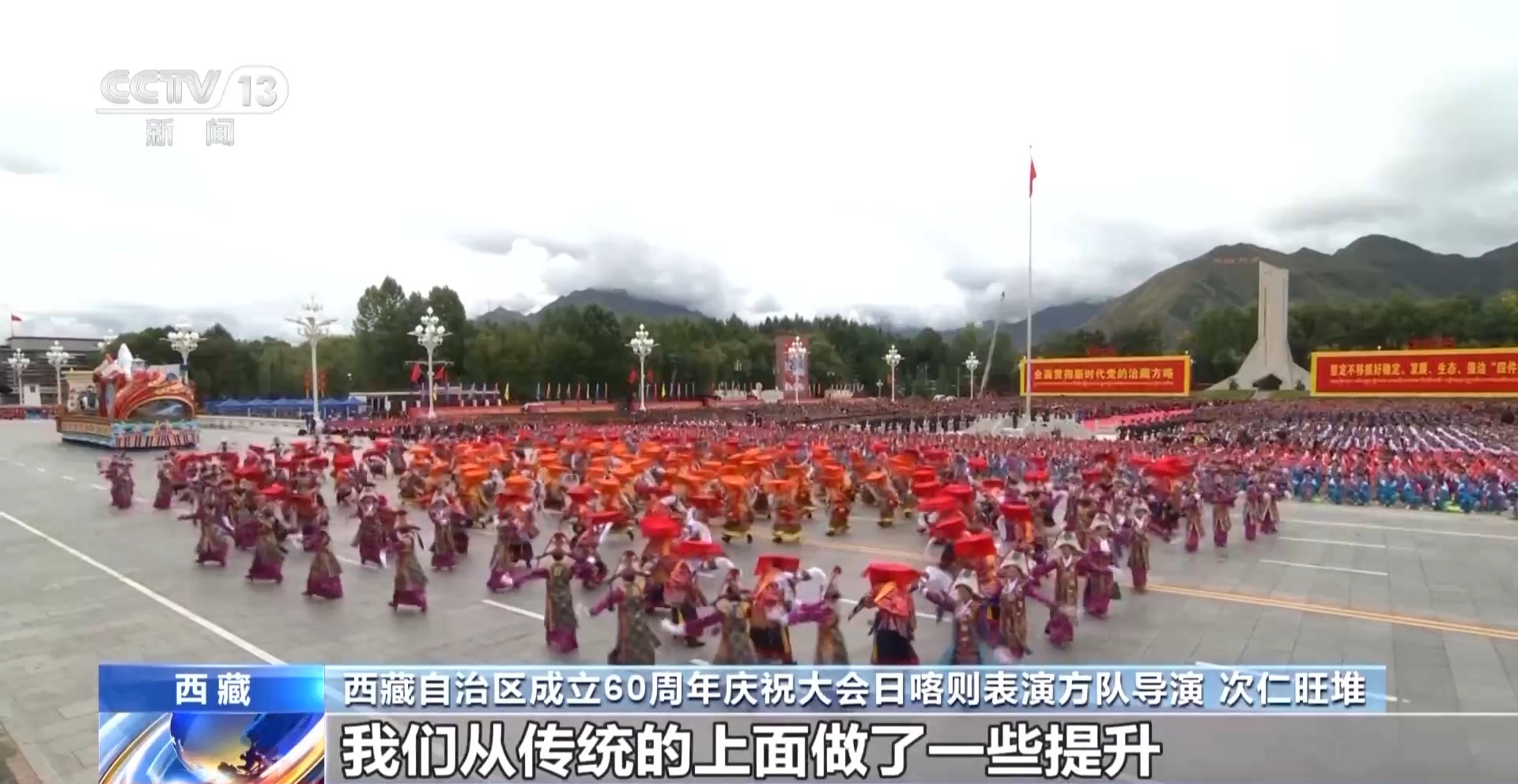 西藏自治区成立60周年庆祝大会日喀则表演方队导演 次仁旺堆:我们在传统表演上做了一些提升,也做了一些创新。我们通过年轻一代来体现活力和甲谐的粗犷、奔放。