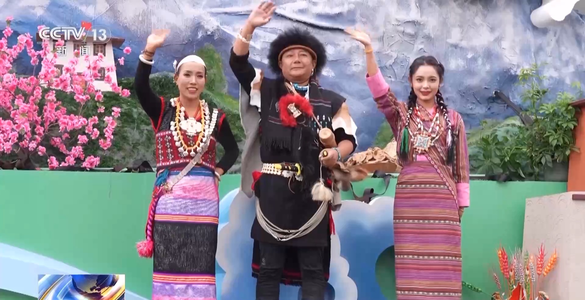 “醉美林芝”彩车演员 林勇:大家好,我们是来自西藏林芝的人口较少民族,我是珞巴族,她是僜人族,她是门巴族。祝我们的全国各族人民幸福吉祥,扎西德勒。