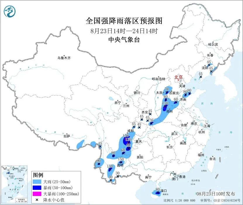 与此同时,我国华北、黄淮东部、东北地区东部以及华南、江南西部、西南地区东部等地累计降水量较常年同期偏多。未来十天,上述大部地区降水仍较常年同期显著偏多。23日至25日,陕西、华北、东北地区东部、黄淮等地有一次降雨过程,上述部分地区伴有短时强降水、雷雨大风等强对流天气。中央气象台于8月23日继续发布暴雨蓝色预警。