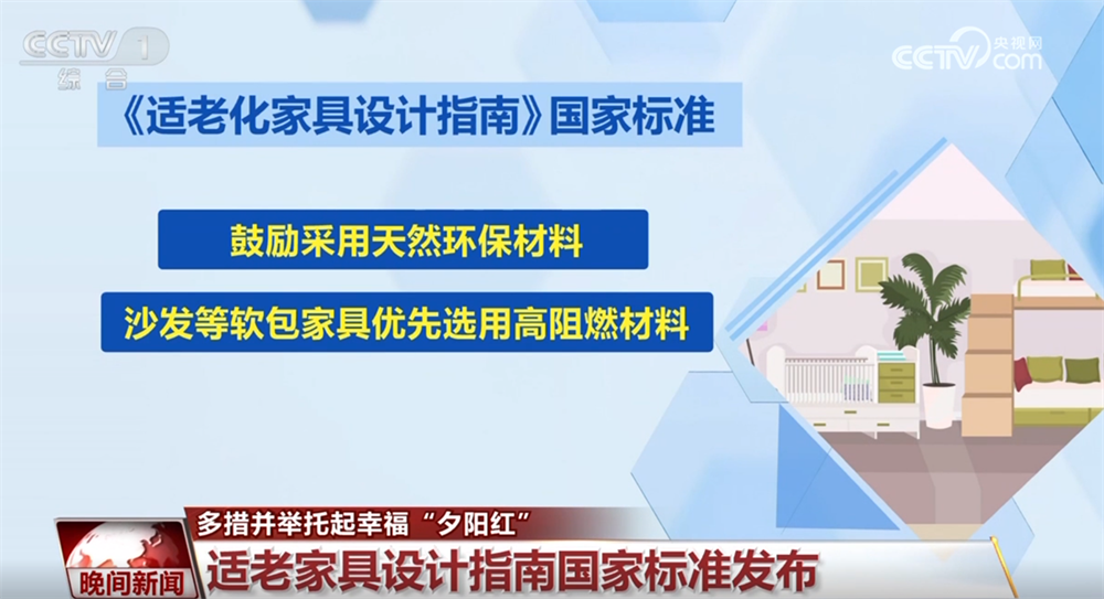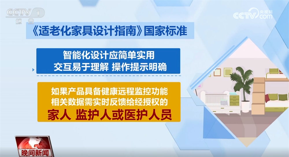 适老化家具应该什么样?8月25日,市场监管总局批准发布《适老家具设计指南》国家标准,将于2026年2月1日正式实施。标准明确,适老家具在外观材料设计时应选用柔和中性色与低饱和暖色,与墙面地面形成对比,以便老年人清晰识别边缘,减少磕碰情况的发生;鼓励采用天然环保材料,沙发等软包家具优先选用高阻燃材料。产品高度、角度应尽量设计为可调节式,外露部件需做到圆滑流畅,整体结构需稳固结实,扶手需具备防滑性能。智能化设计应简单实用,交互易于理解,操作提示明确,如果产品具备健康远程监控功能,相关数据需实时反馈给经授权的家人、监护人或医护人员。